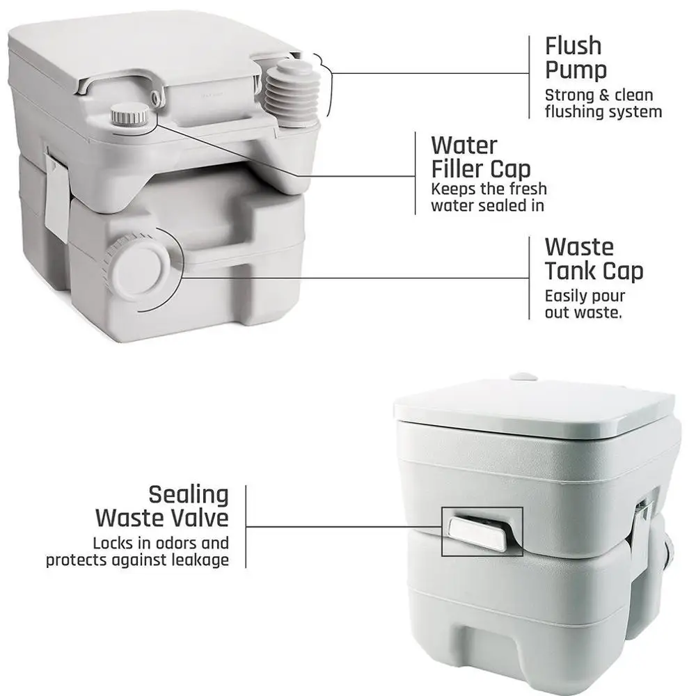 Portable Camping Toilet Loo Caravan Flush Travel Indoor Outdoor Hiking Boating Potty Commode Remova