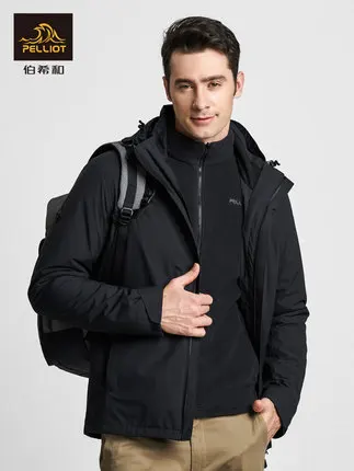 PELLIOT Outdoor Jackets Men's Tide Brand Jacket Three-in-one Thickening Fleece Two-piece Mountainee