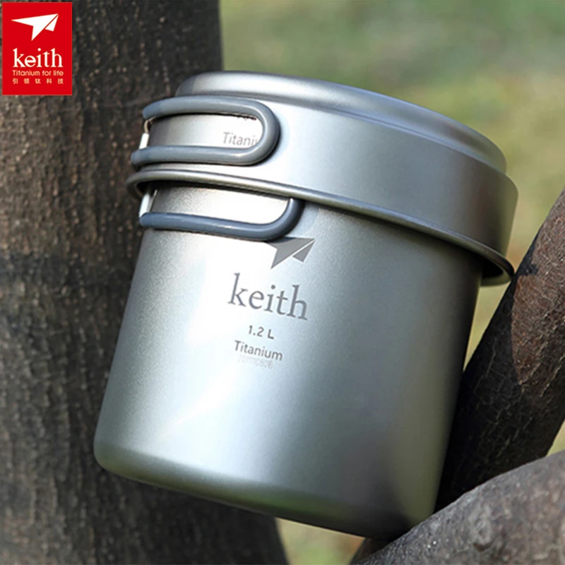 HOT SALE Keith Titanium Pot Titanium Cookware Set Caldron & Frying Pan 400ml+1.2L Hiking Hunting Picnic Camp