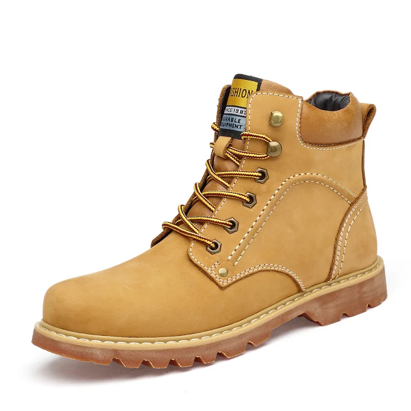 ORIGINAL Nubuck Genuine Leather Hiking Shoes Rain Boots Winter Plush Warm Martin Boots Sewing Solid Flat Out